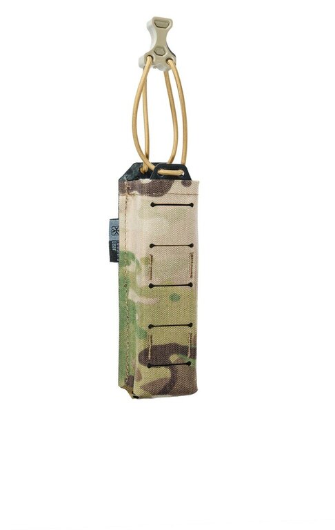 The magazine does not just fall out of the pouch thanks to the elastic cord with a profiled puller in the upper part of the case, which is also easy to operate. The front of the holster features a single row of laser cut slots that are MOLLE/PALS compatible and allow for the attachment of other equipment such as various holsters, pockets and the like.