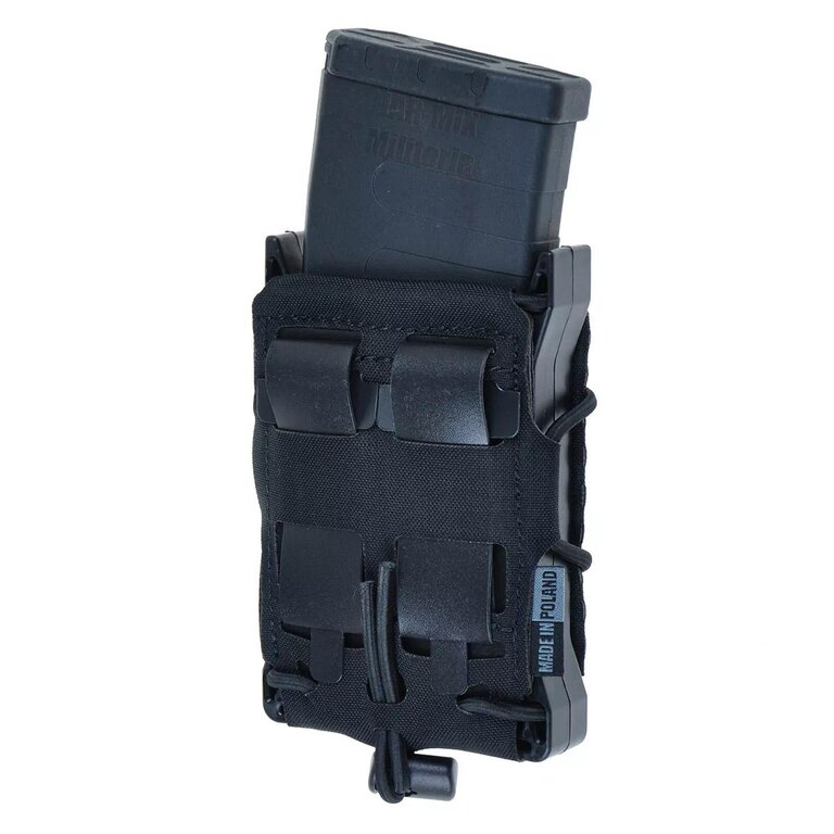 The pouch is designed to keep magazines securely in place even during demanding movements. Thanks to the shock cord system, you can be sure the contents won't spill but are always readily available. Ideal for tactical operations, sports shooting or outdoor activities where every second counts.