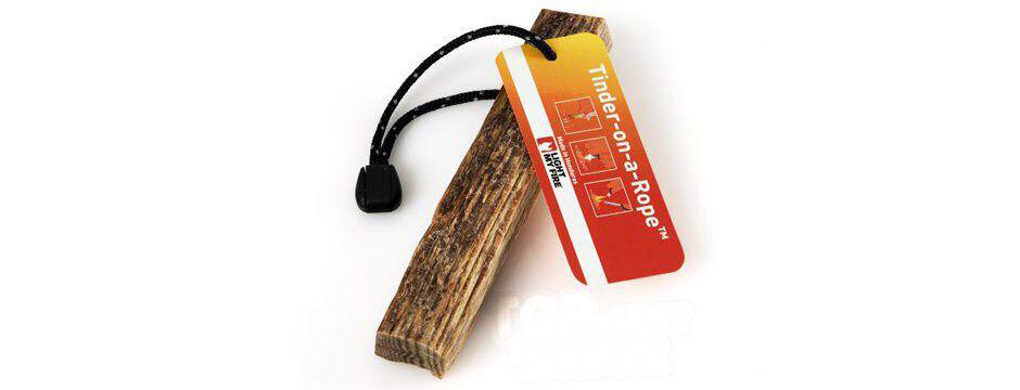 This Tinder firestarter comes with black cord for attachment.