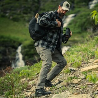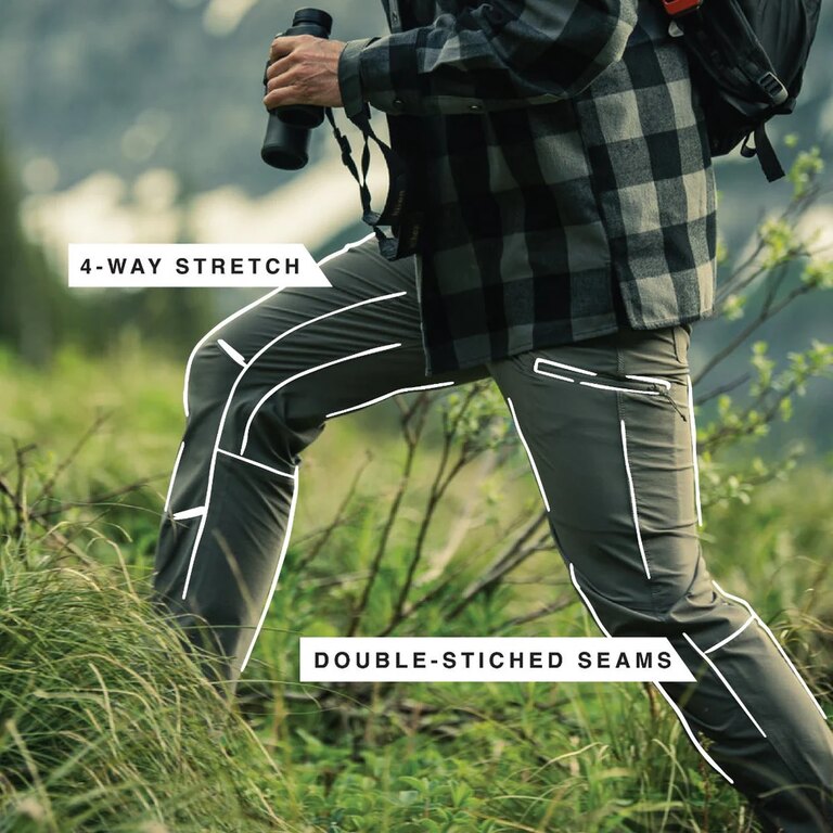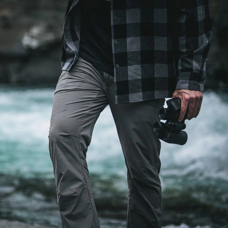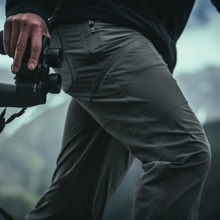 The pants are designed for active movement. Articulated knees and a gusseted crotch provide excellent mobility when climbing, hiking, or moving through challenging terrain. The stretch fabric combined with an athletic fit allows natural movement while maintaining the pants’ shape and comfort throughout the day.