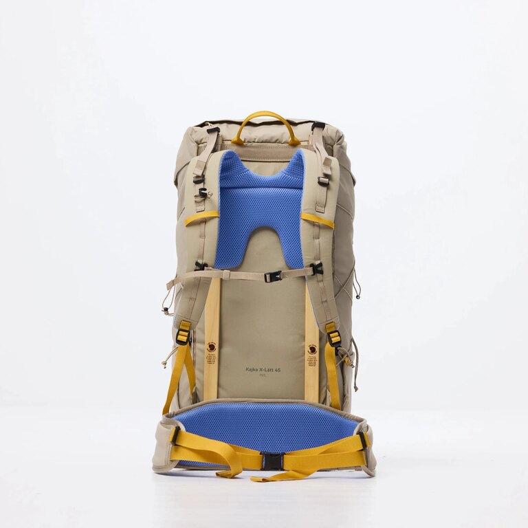 The Kajka X-Lätt 45 is hydration system compatible and equipped with attachments for trekking poles, along with compression straps to stabilize the load. The design also emphasizes long-term durability and ease of repair in the field.