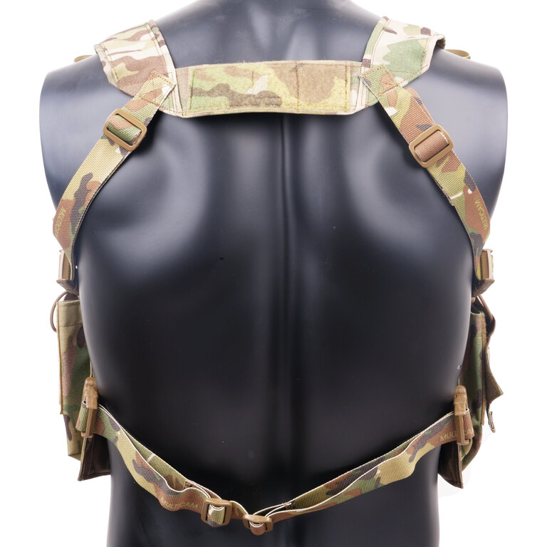 The vest is equipped with loops to route antennas of communication devices and for tubing of hydration bags and is removable using four side release buckles.