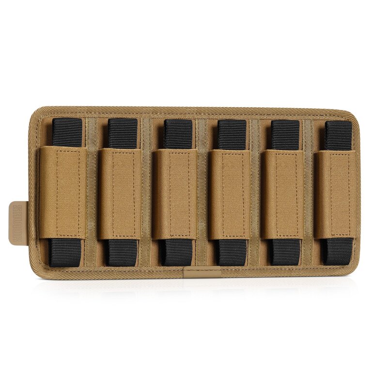 The Velcro insert for six pistol magazines is a practical solution for organized storage and quick access. Designed to attach securely to hook-and-loop panels, it keeps magazines firmly in place even during movement while maintaining an efficient and space-saving layout.