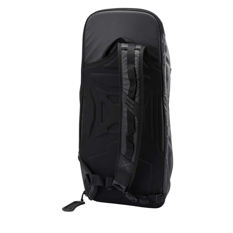| Fixing / transport | Adjustable, padded shoulder strap (cross carrying on body) + concealable, adjustable waist belt 2x heavy duty handles (1 top front and 1 on right long side; carrying in hand; grab and go handles) Heavy duty fabric back handle (hand carrying; also serves as grip for defence) |