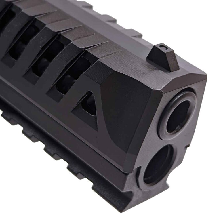 All shooters will definitely appreciate the perfect ergonomics of the gun and its modularity. The lower part of the grip is widened, providing more support for the little finger. The weapon is thus less prone to unwanted upward movement during firing. The pistol offers an optimal grip angle and excellent weight distribution. The grips, which wrap nearly all the way around the handle and join at the back, contribute to the high ergonomics of this weapon.