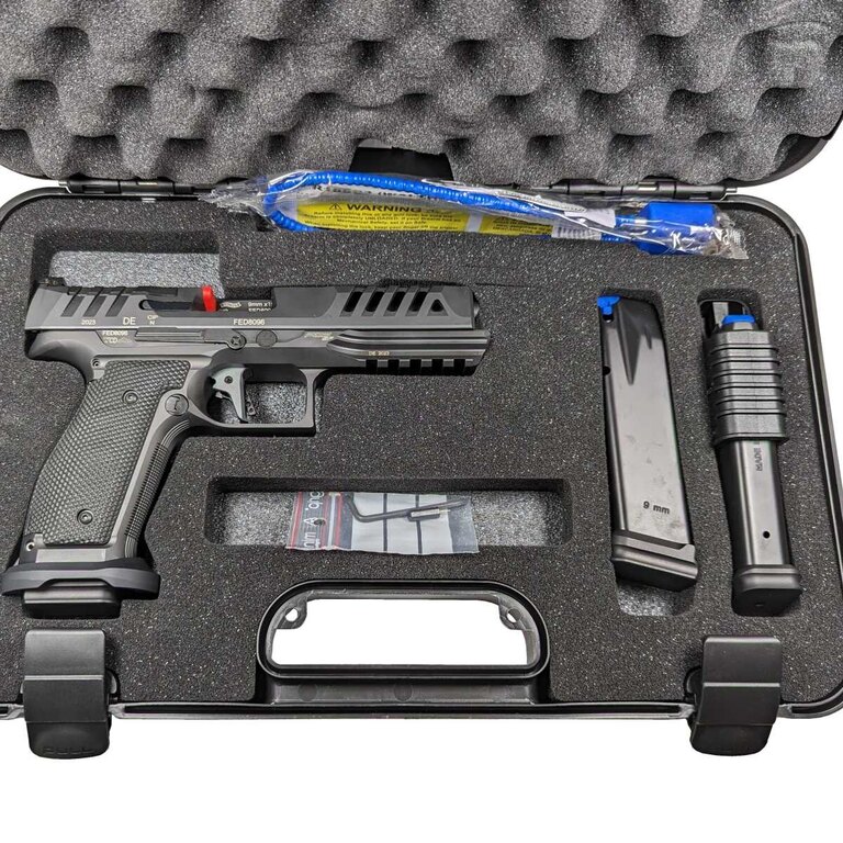 | Parts of delivery | Pistol 2× magazine (18 rounds) Plastic case Charging device Torx key Sight adjustment screwdriver Original user manual Czech user manual |