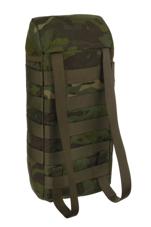 This additional side pocket from the Polish backpack manufacturer Wisport is compatible with the modular MOLLE system. On its back there are two vertical straps for attaching to the backpack, and around the perimeter there is MOLLE webbing for attaching additional pouches or organizers.