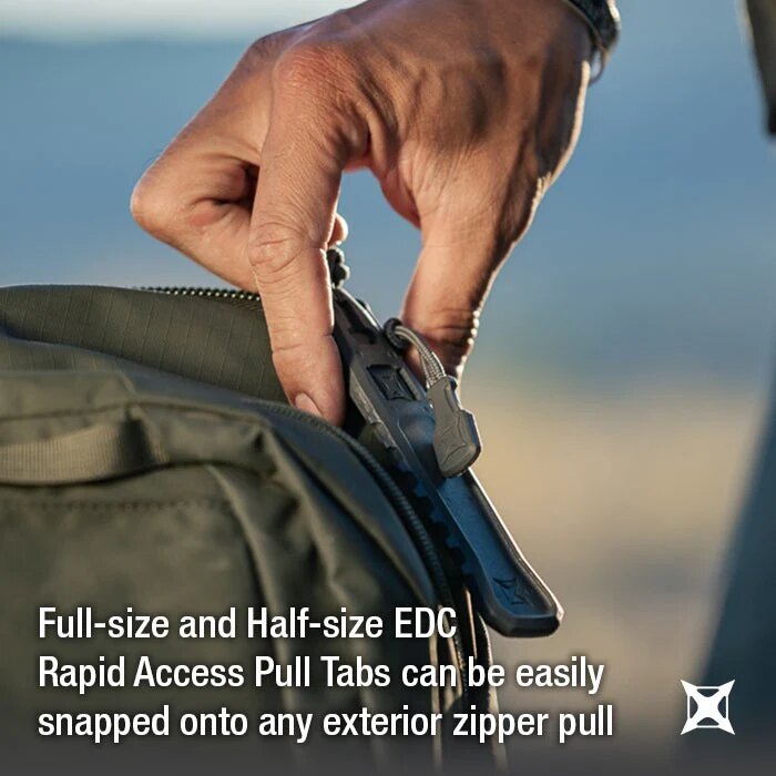 The pulls are made from Duraflex thermoplastic polyurethane (TPU), a material known for its combination of durability and flexibility. This construction withstands frequent use in daily carry or professional environments. Nylon cords and shaped zipper grips provide a secure hold and long service life.