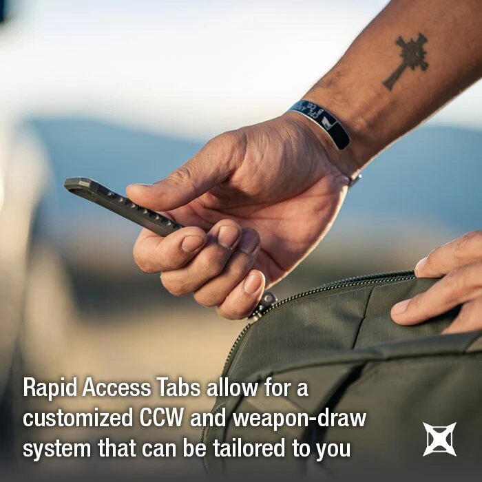 The zipper pull system is fully configurable, allowing users to adapt zipper operation to specific gear setups. Different pull sizes make it easier to identify individual compartments by touch, helping speed up gear access and improve orientation when handling equipment.